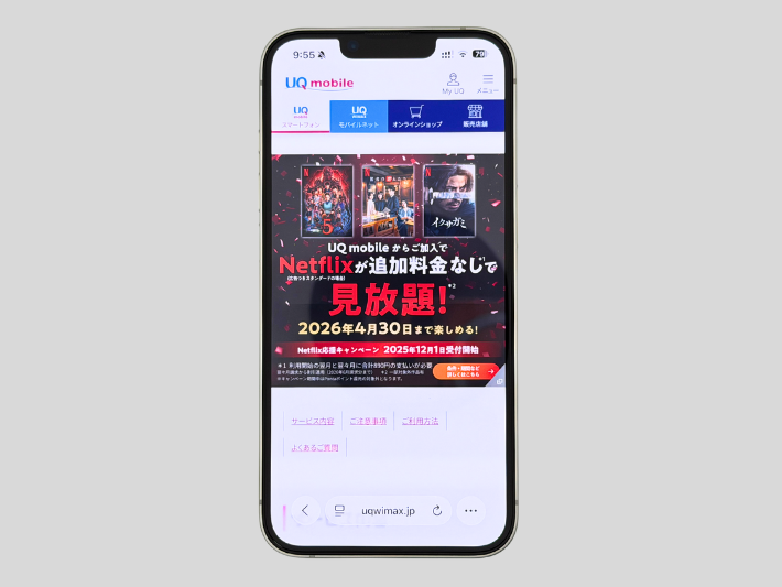 UQモバイルオンラインショップにアクセスし、契約手続きを進めます。
